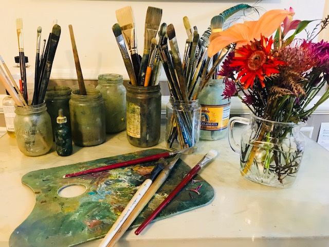 work space with flowers